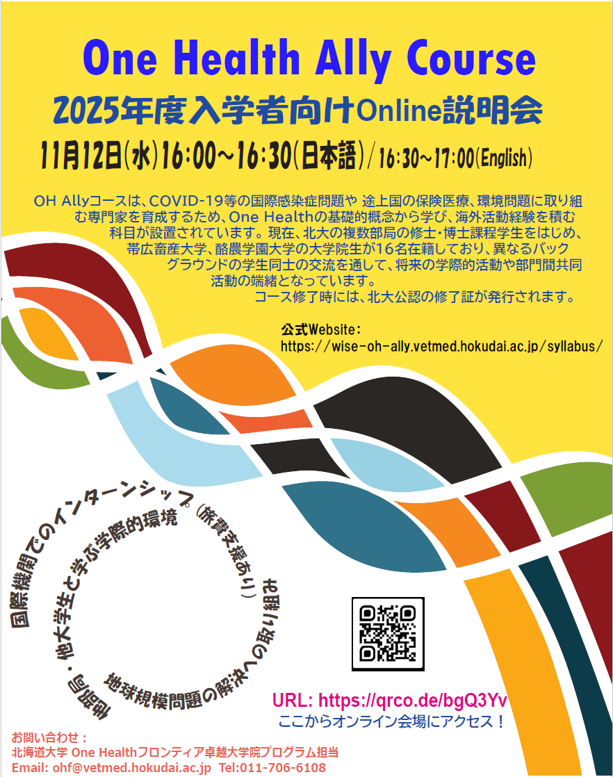 2025年度One Health Allyコースのオンライン説明会を下記の通り実施いたします。