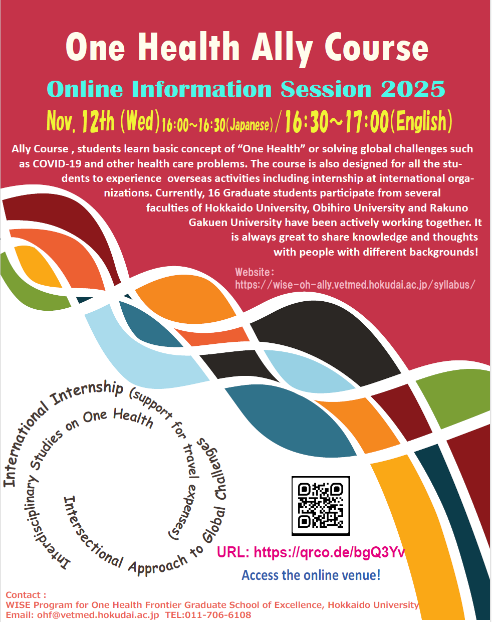 【Contact】 WISE Program Office, Faculty of Veterinary Medicine (ohf@vetmed.hokudai.ac.jp)